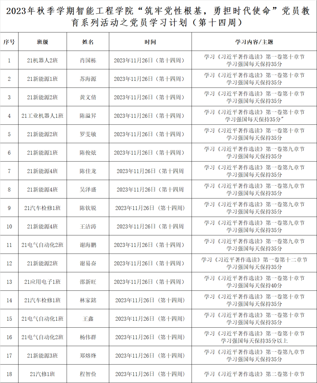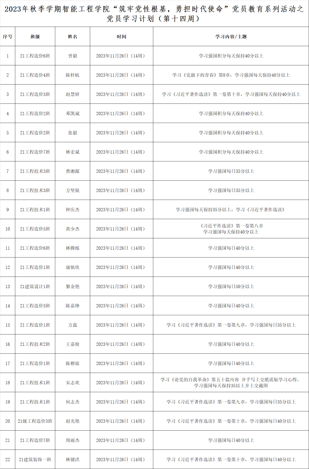第十四周学生党员学习计划表