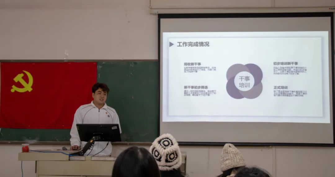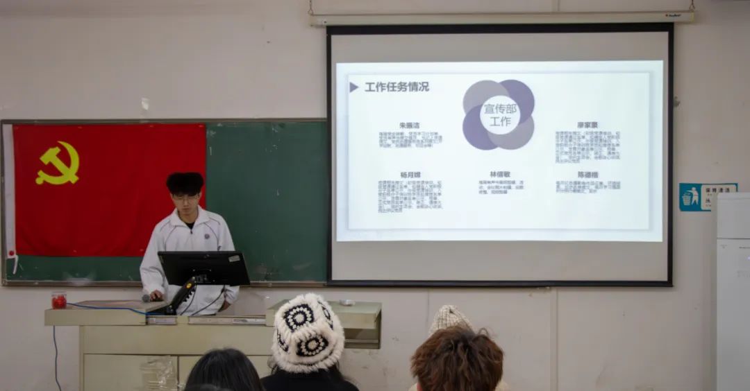 在齐声高唱国际歌过后,会议进入第一阶段,由各部门部长就本学期的工作进行了详尽的总结汇报。他们系统地梳理了各自部门所承担的任务与目标,全面展示了工作成果。