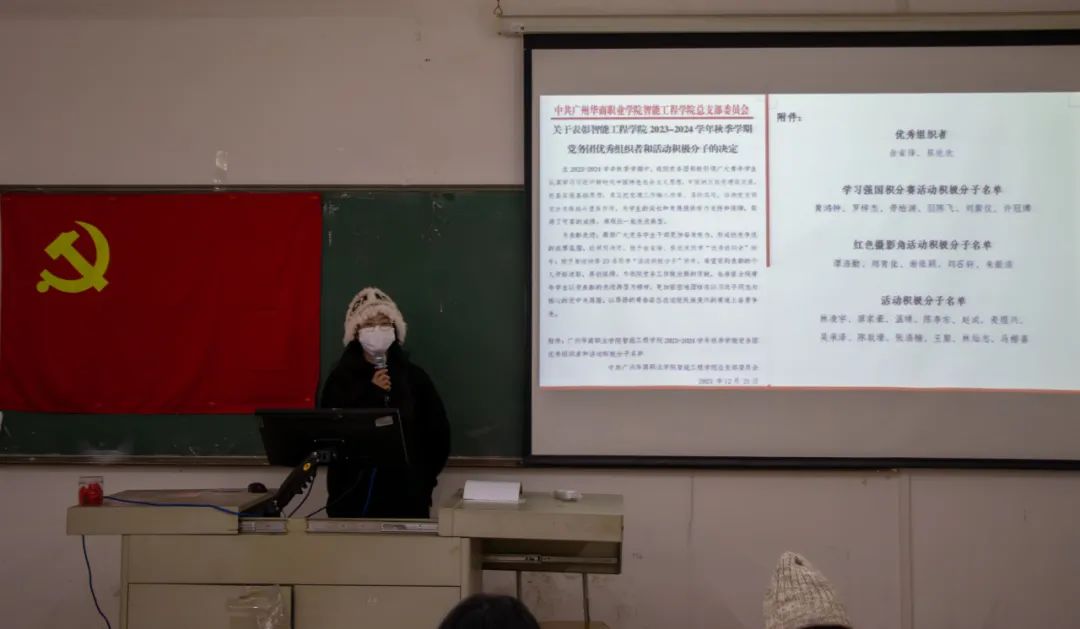 岁月不居,时节如流。本年度的学习生活即将进入了收尾阶段。为全面回顾和总结2023年度中学院党务的各项工作,分析工作中存在的问题和不足,展望2024年度发展规划和目标,智能工程学院党务团于2023年12月27日在博C507召开了年度总结暨表彰大会。学生第一党支部书记魏文香、学生第二党支部书记陈心儿、党务团全体学生干部出席会议。