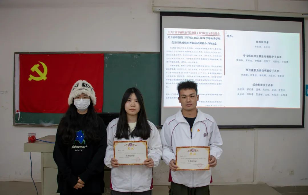会议第二阶段,公布获奖人员名单,并由魏文香老师与陈心儿老师为2023年度党务工作优秀组织者与活动积极分子代表颁奖。