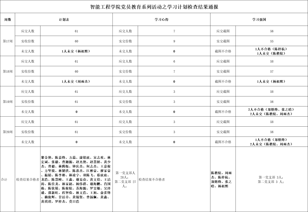 为深化党员的自我教育管理模式,切实提升党员自我教育管理实效,智能工程学院党总支针对现阶段党员教育管理不足现状,积极探索,组织开展党员自我教育学习活动,锚定学习目标,认真贯彻落实,狠抓推进整改,抓好奖励惩罚。现将1月份党员学习计划及检查结果公布如下。