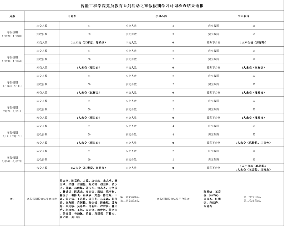 为深化党员的自我教育管理模式,切实提升党员自我教育管理实效,智能工程学院党总支针对现阶段党员教育管理不足现状,积极探索,组织开展党员自我教育学习活动,锚定学习目标,认真贯彻落实,狠抓推进整改,抓好奖励惩罚。现将寒假假期党员学习计划及检查结果公布如下。
