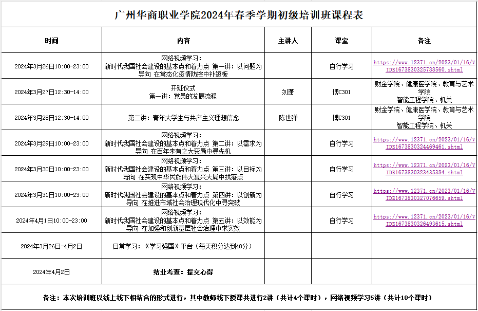 智能工程学院于2024年3月26日至2024年4月2日开展春季学期初级党课培训。本次培训从专题教育、线上线下双模式授课、党史影像资料、日常学习、结业考核多方面进行,培训对象为本学期递交入党申请书的同学。