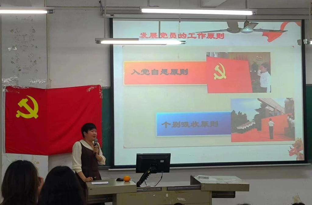 线下第一节党课及开班仪式由刘潇老师主持,并为同学们讲述《党员的发展流程》,刘潇老师围绕发展党员工作中的基本程序和常见问题、主要材料的书写要求和注意事项等内容展开。学员们认真聆听并做好党课记录。她强调,每一名学员必须认真学习发展党员工作流程,不断强化自身的责任意识、纪律意识、奉献意识,在工作中时刻谨记身份,用实际行动向党组织靠拢。