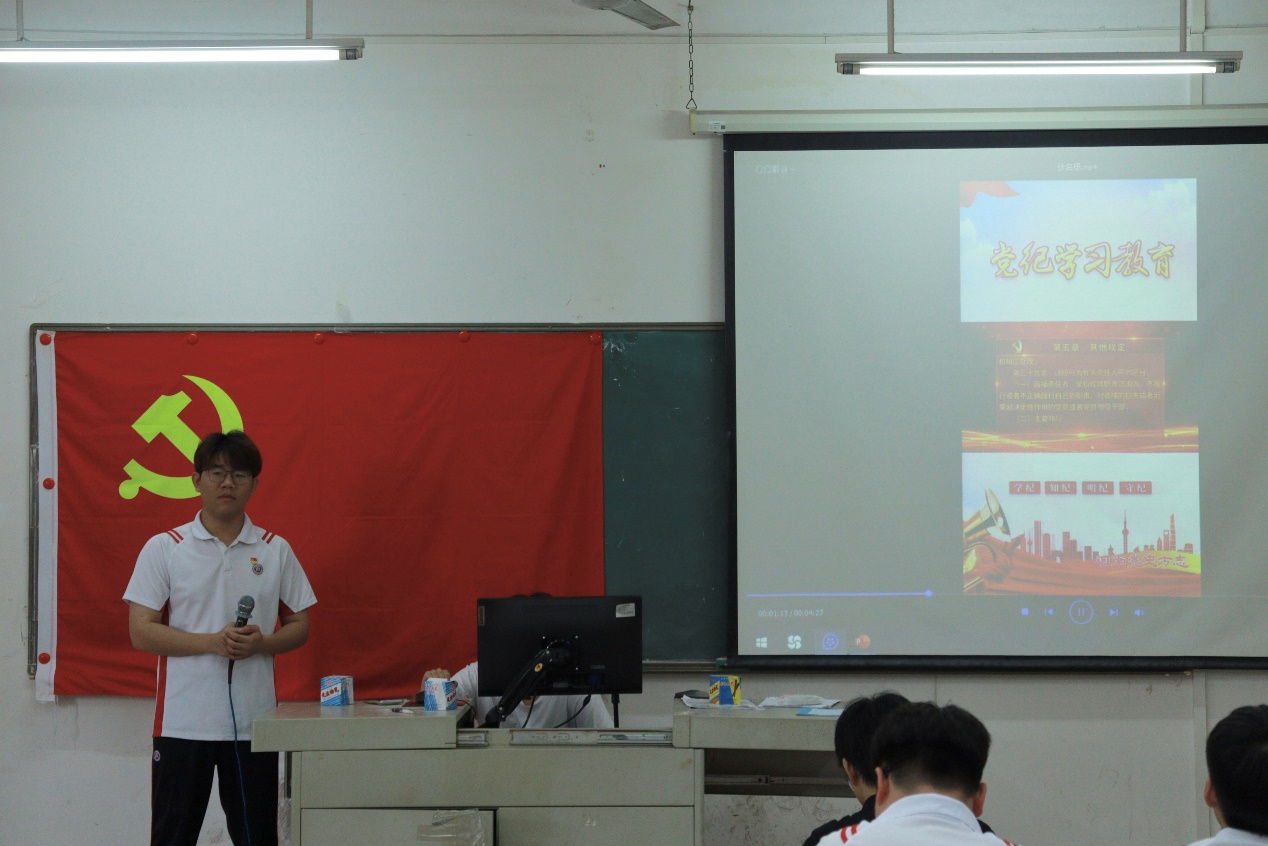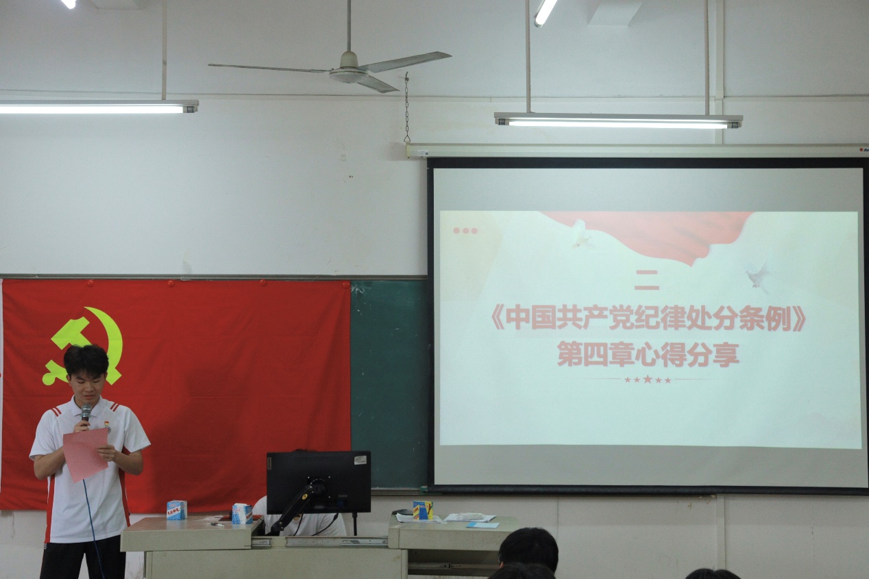 会议伊始,郭梓锋老师引导党员学生们共同观看《条例》的内容解析视频。此视频系统地阐述了《条例》的修订背景、总体要求及核心内容,同时,结合生动鲜活的实际案例,深刻剖析了违反党的纪律所带来的危害性与严重性,从而进一步筑牢了党员学生们内心的纪律警戒线。