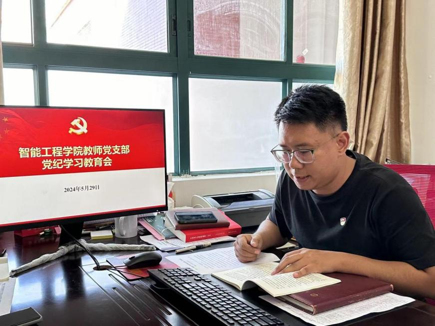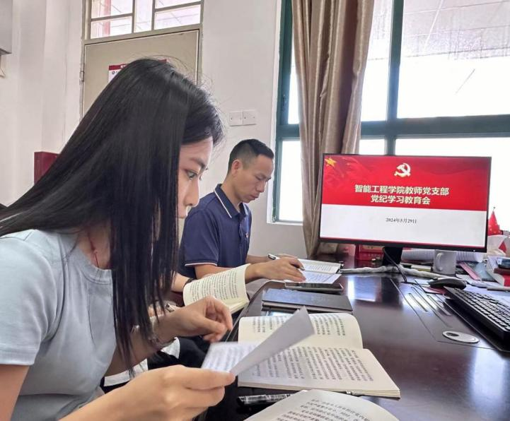 2024年5月29日,智能工程学院教师党支部的教师党员齐聚一堂,共同学习《中国共产党纪律处分条例》中的部分章节,以此增强全体教师党员的纪律意识,进一步筑牢思想防线。