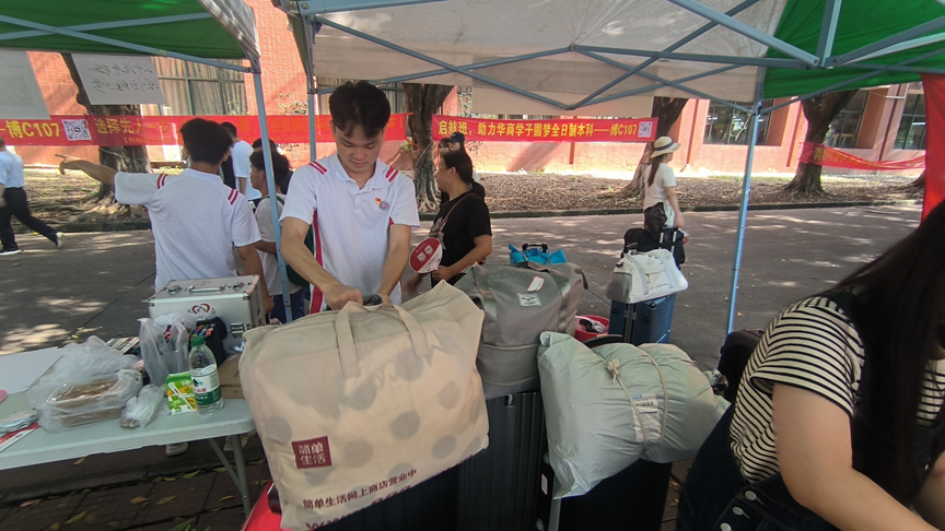 “同学,我来帮你搬行李吧!”“请问你的宿舍在哪里?我带你去。”在熙熙攘攘的迎新现场,党员志愿者们忙碌的身影随处可见。他们或肩扛手提,帮助新生搬运沉重的行李;或耐心解答,为新生及家长提供详尽的入学指南和校园生活建议;还有的党员志愿者则化身“临时看护”,细心看管新生的行李物品,确保每一件物品都能安全送达宿舍。