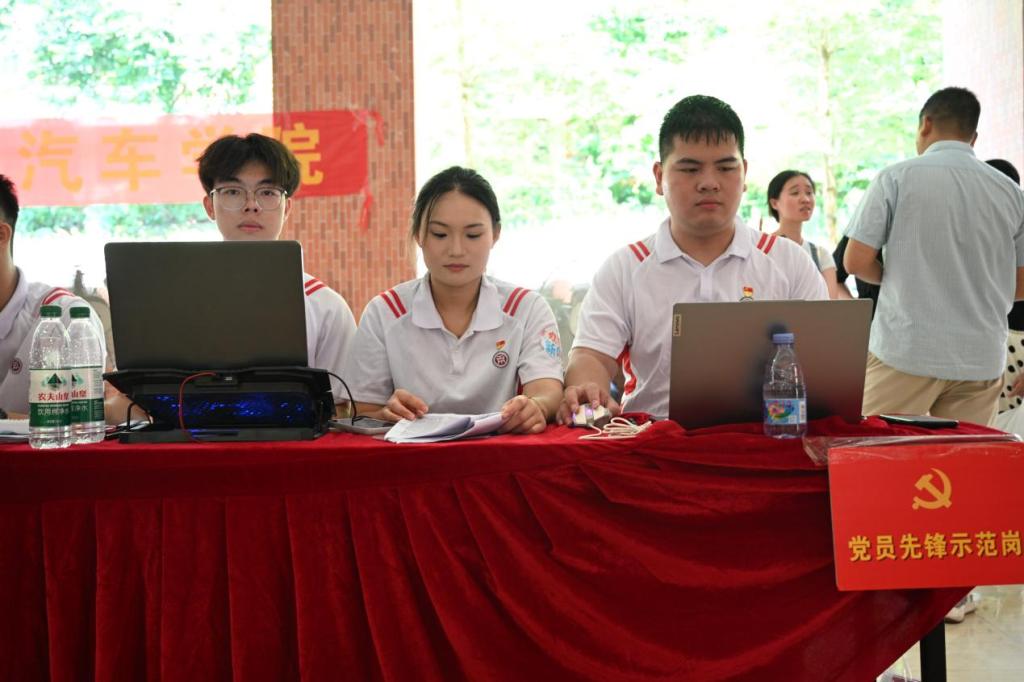 清晨,当第一缕阳光洒向校园,智能制造与汽车学院的党员志愿者们已整装待发,他们身着统一的校服,胸前佩戴着鲜红的党徽,精神抖擞地站在迎新现场,成为了一道引人注目的风景线。