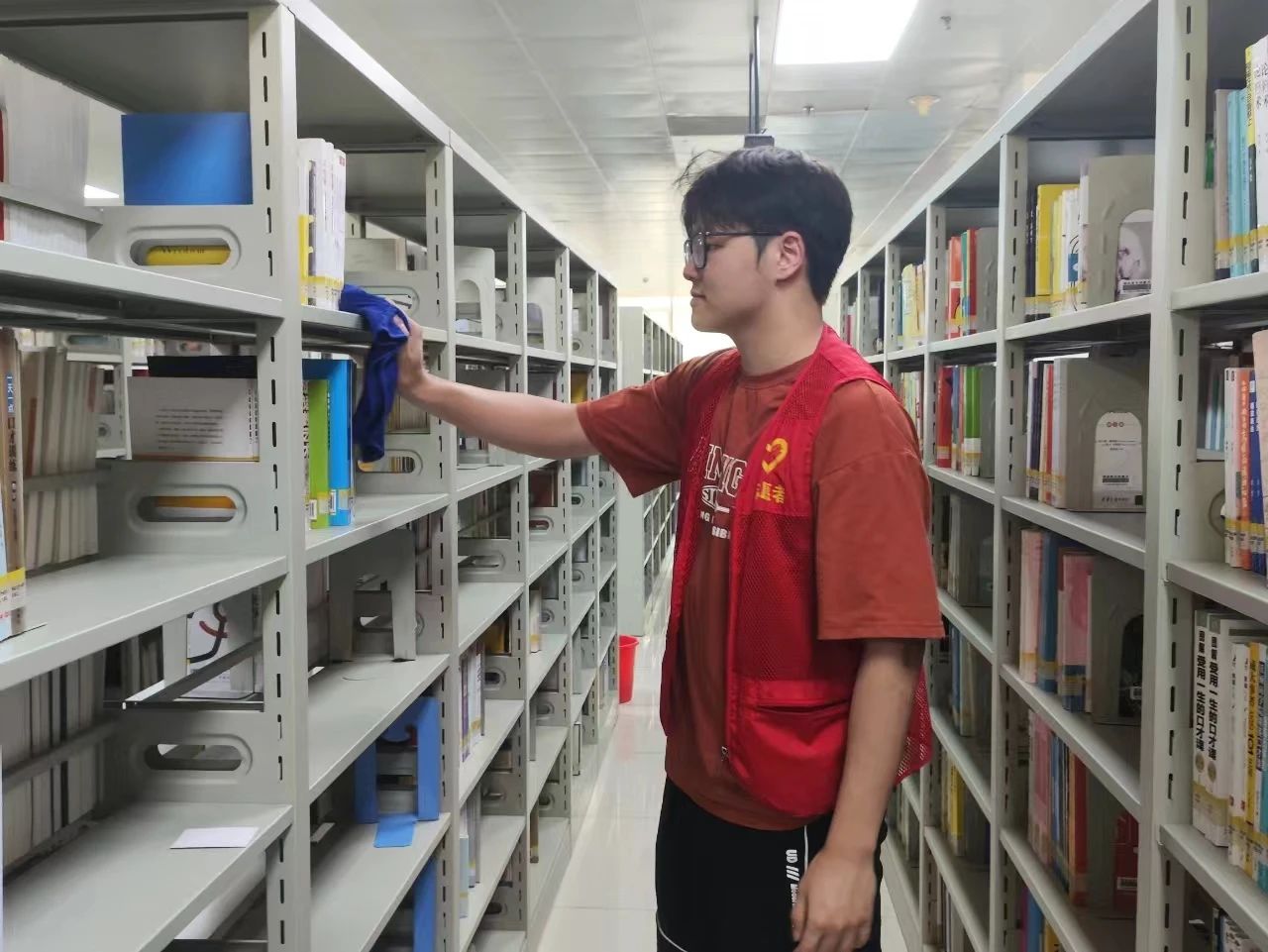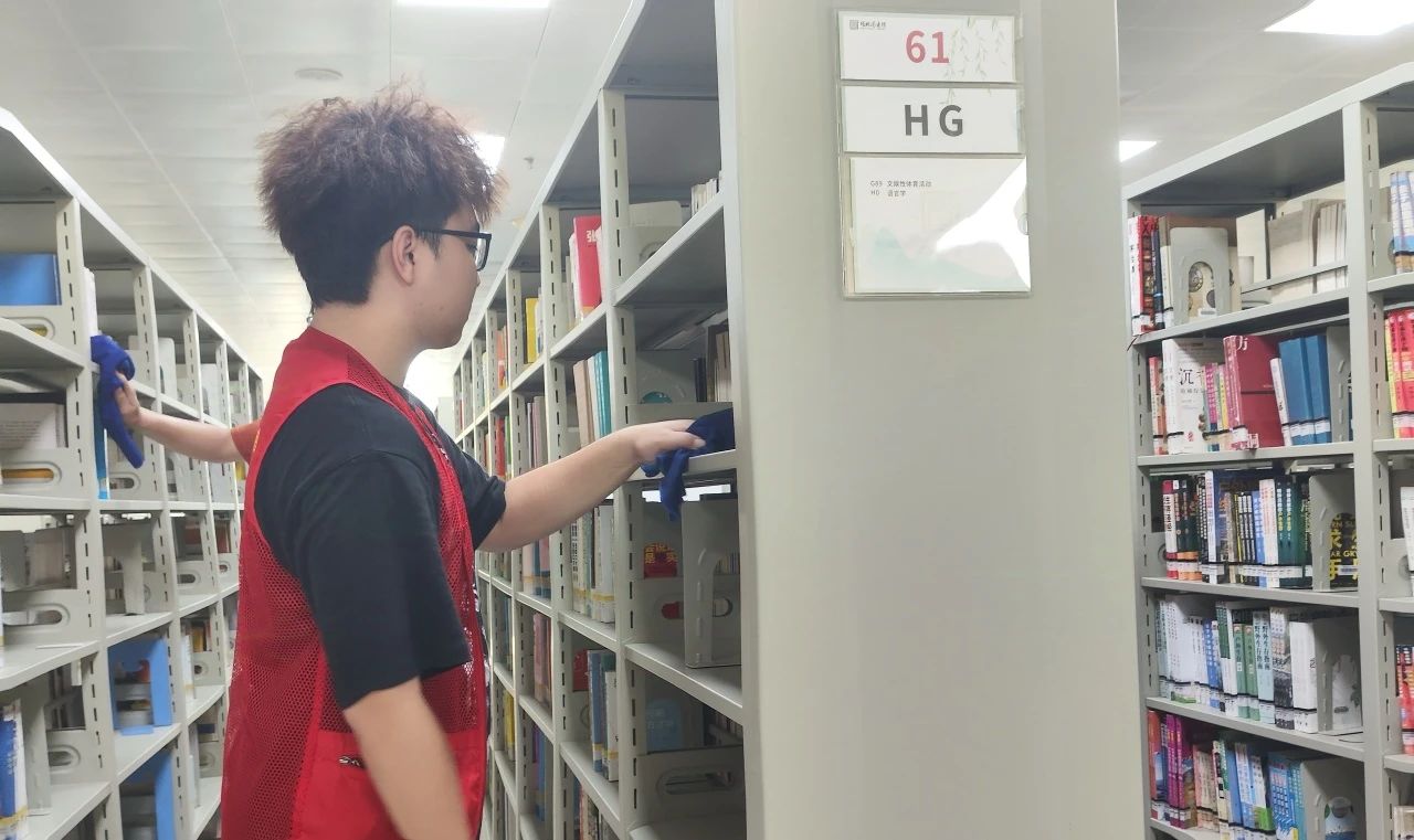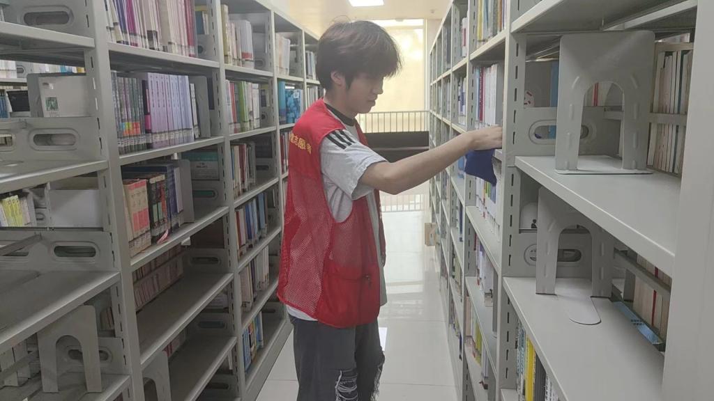 志愿者们都以极大的耐心和细心,一一整理着书架上的每一本书并且将书架擦拭的一尘不染。他们确保每一本书都准确地放置在它原本的位置,就像每一本书都找到了自己的“家”。这样的整理工作,使得大家在探索知识的海洋时,能够更加方便快捷地找到所需的书籍,让整个寻找知识的过程变得更加顺畅和愉悦。