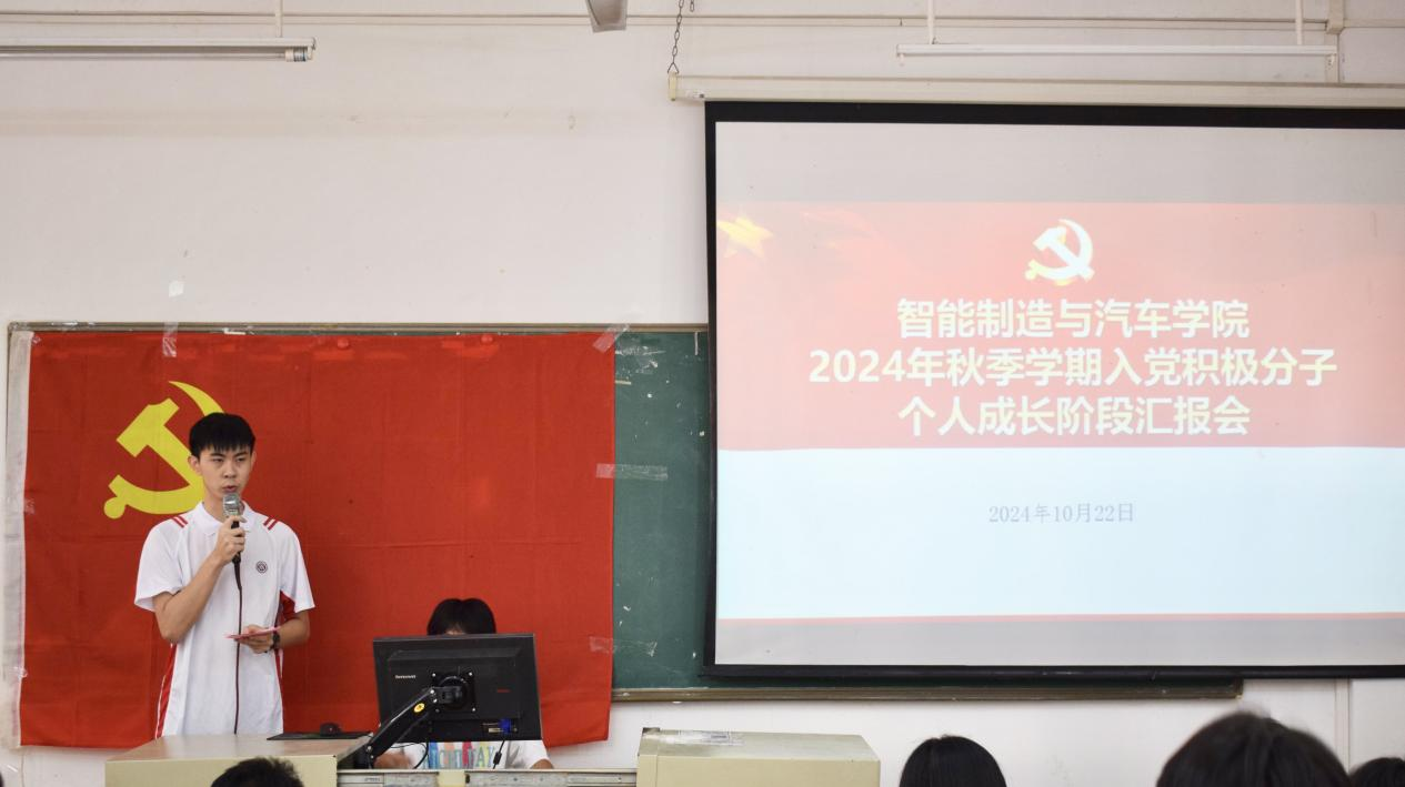 为充分了解入党积极分子在考察期间的表现情况,进一步加强党员队伍建设,充实党的新生力量,永葆党的青春活力,增强党员的使命担当。智能制造与汽车学院于10月22日中午以支部为单位,组织召开2024年秋季学期入党积极分子个人成长阶段汇报会。学院党总支副书记姚柏洲,第一、第二、第三党支部委员、党员老师代表及22、23级入党积极分子参会。