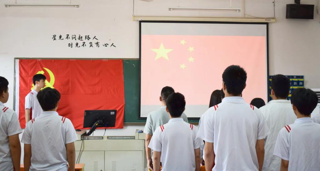 大会在庄严肃穆的国歌声中拉开了帷幕。随着那雄浑壮阔、振奋人心的旋律响起,全体师生肃然起立,以满怀的激情齐声高唱国歌,每一声都蕴含着对伟大祖国的崇敬与深沉的热爱。