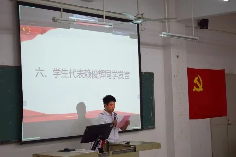 紧接着,学生代表赖俊辉发表了获奖感言,字里行间透露着他获奖的激动心情,并表示在今后的工作学习中会奋勇拼搏,目有山河,追光而往,彰显出新时代青年朝气蓬勃的精神姿态。