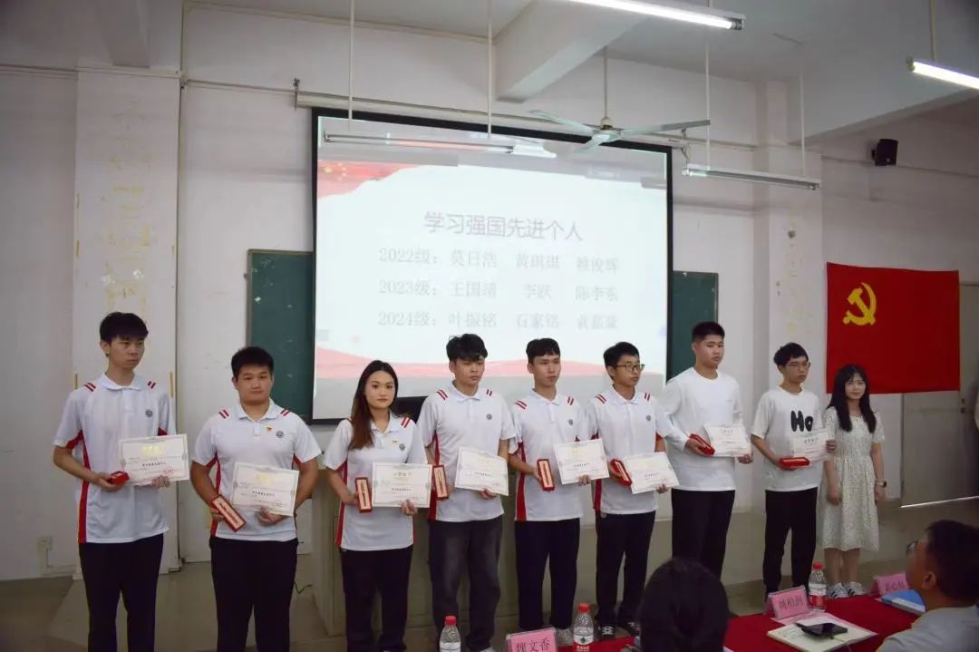 接着,学院党总支宣传委员、学生第二党支部书记周杨同志宣读《中共广州华商职业学院智能制造与汽车学院总支部委员会关于表彰2024年“学习强国先进个人”和“党员教育模范先锋”的决定》,莫日浩等9名同学获评“学习强国先进个人”称号,赖俊辉等6名同学获评“党员教育模范先锋”称号。她向获得表彰的优秀学子们表示祝贺,并号召同学们向榜样学习,同时提醒同学们要脚踏实地,戒骄戒躁,从点滴做起,不断学习,不断成长进步。