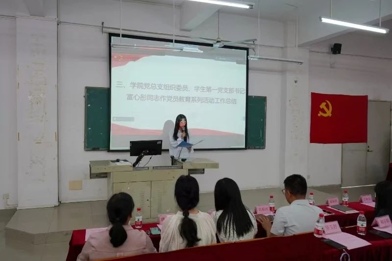 会议伊始,学院党总支组织委员、学生第一党支部书记富心彤同志作党员教育系列活动工作总结。报告全面而细致地回顾了学院在过去一年里以“星火相传”读书班、党员教育有声书和党员红色书籍学习等为载体开展一系列的党员教育系列活动。这些活动不仅提升了党员自我教育管理工作实效,而且引导党员坚定共产主义远大理想和中国特色社会主义共同理想,增强党性、提高素质,认真履行义务,正确行使权利,充分发挥先锋模范作用。