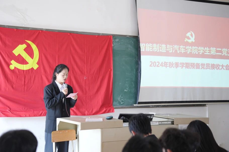 为深入学习贯彻习近平新时代中国特色社会主义思想,进一步加强与推进党员队伍的建设,为党组织注入新鲜血液,2024年12月6日,智能制造与汽车学院学生第二党支部在博学楼C505召开了发展对象转预备党员通表大会。智能制造与汽车学院党总支宣传委员、学生第二党支部书记周杨同志、学院学生第二党支部组织委员魏文香同志、学院学生第二党支部宣传委员郭梓锋同志、党员老师代表、预备党员以及发展对象参加此次会议。