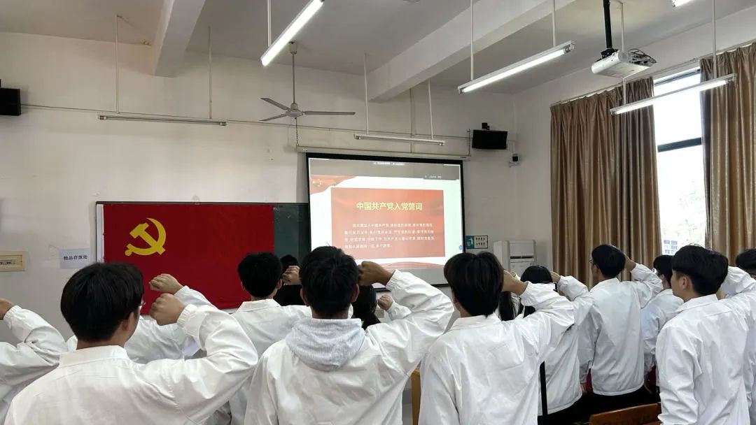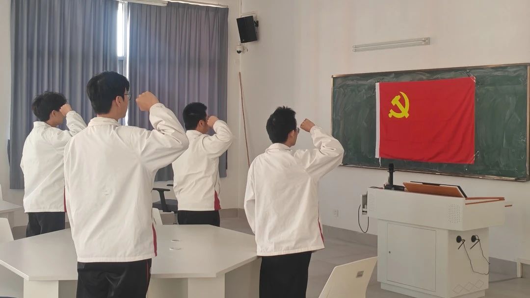 会议第三项议程,学院党总支组织委员、学生第一党支部书记富心彤同志带领全体预备党员面向党旗进行庄严宣誓。他们声声誓言,字字铿锵,见证了预备党员一颗颗红心向党的赤诚忠心,承载着他们对共产主义事业矢志不渝的坚守,照亮他们即将踏上的奋进征途。