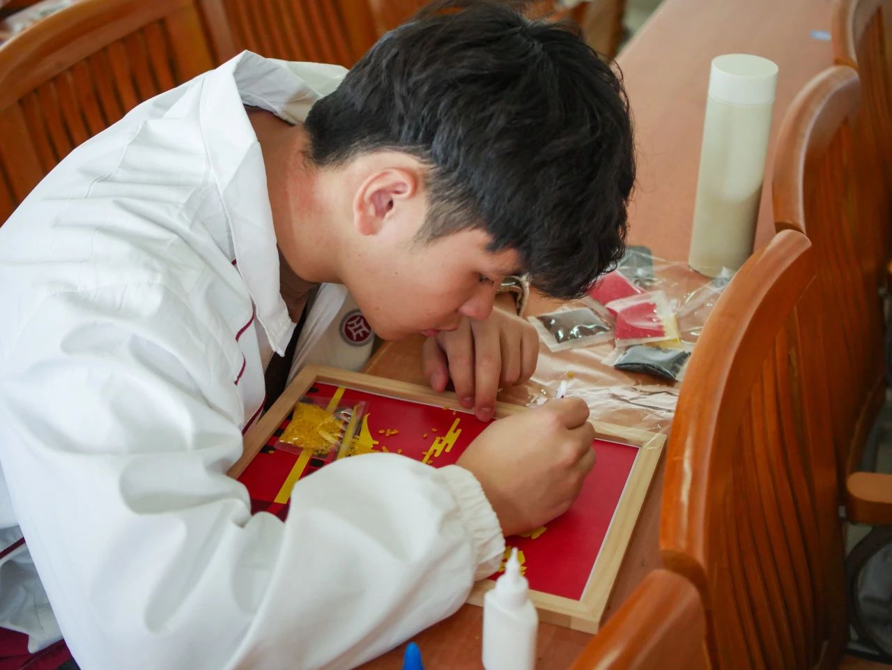 通过此次活动,将党的教育与实践能力紧密结合,加强了学生党员实践能力的培养。学生党员在制作豆子画的过程中,通过动手操作、发挥创意,将各种豆子巧妙地组合成一幅幅精美的作品。这不仅锻炼了他们的动手能力,还激发了他们对文化的自信和国家自豪感,进一步增强学生党员的爱国爱党热情。