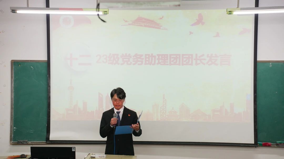23级党务助理团团长陈灶鹏和主席团成员代表王新鹏分别发上台发言,阐述了对未来工作的规划和展望。他们表示将以身作则,带领学院学生组织积极进取,努力为同学们提供更优质的服务,为学院的发展贡献自己的力量。