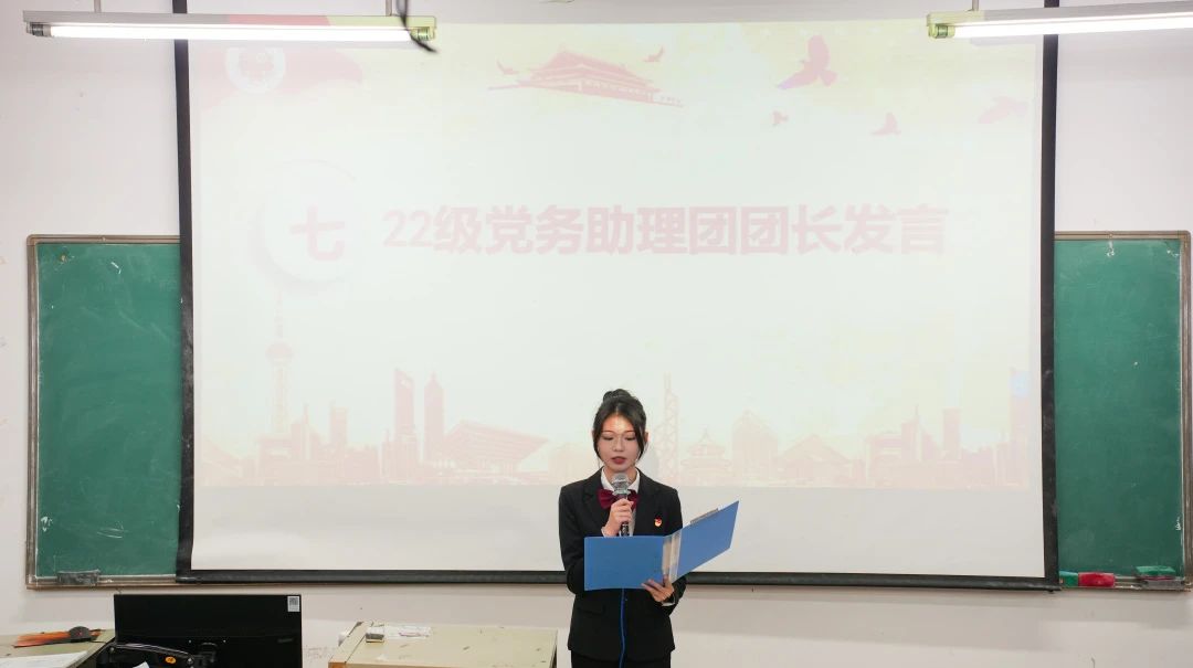 22级党务助理团团长羽陈飞师姐和团学主席团代表李国森师兄分享了宝贵的工作经验,讲述了自己在以往工作中的心得体会,为新干部们提供了借鉴。
