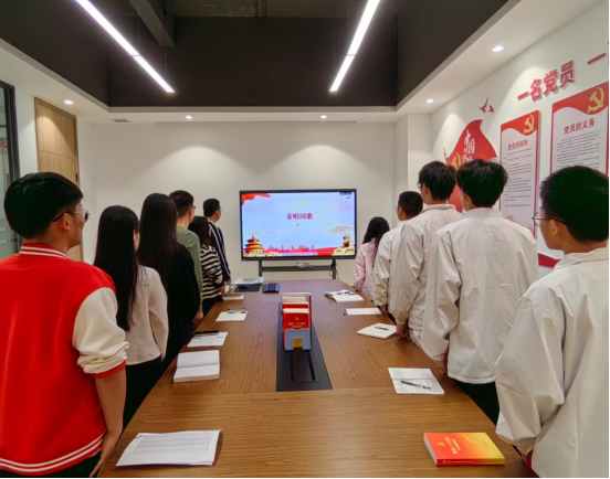 活动伊始,全体党员奏唱国歌。