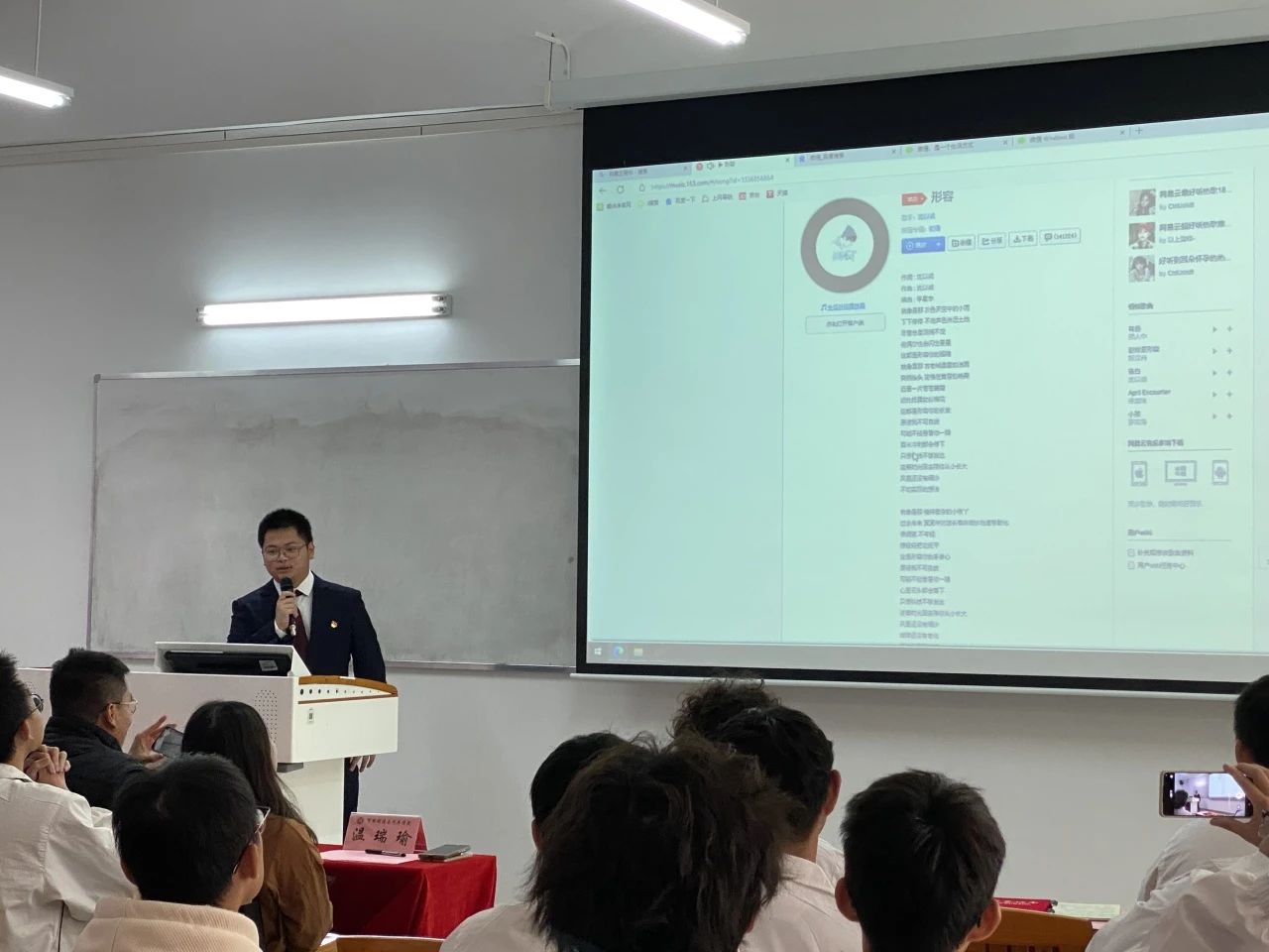 大会暖场节目是23级学生代表凌华杰同学表演歌曲《形容》。