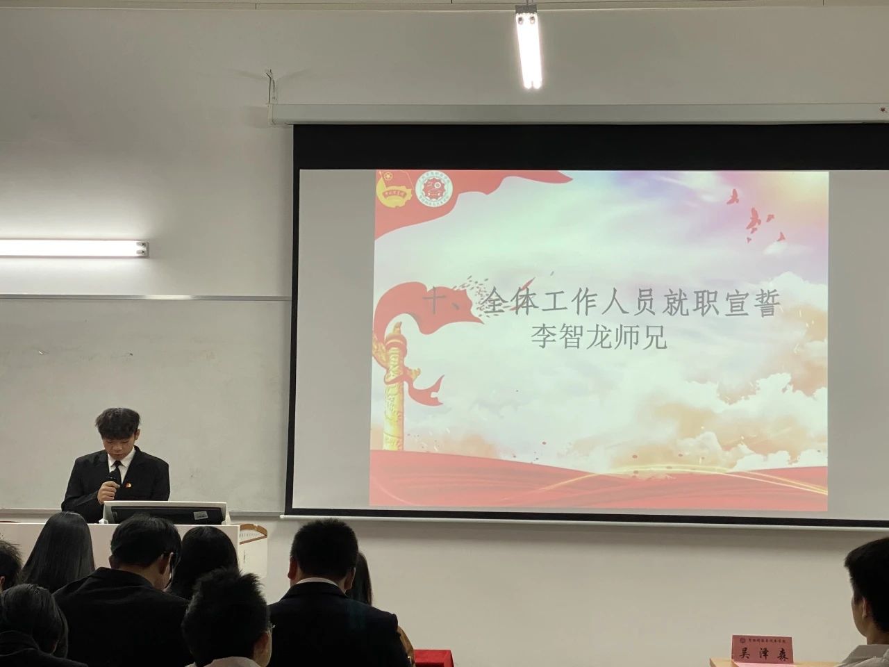 李智龙师兄带领新一届全体工作人员宣誓。