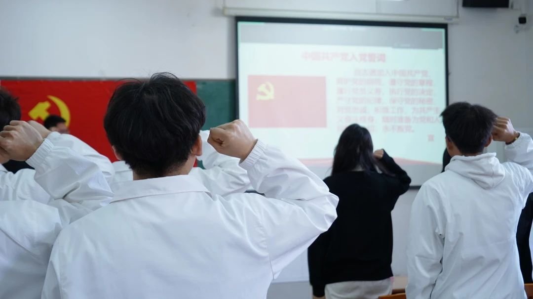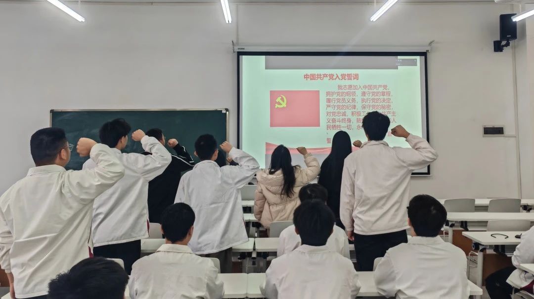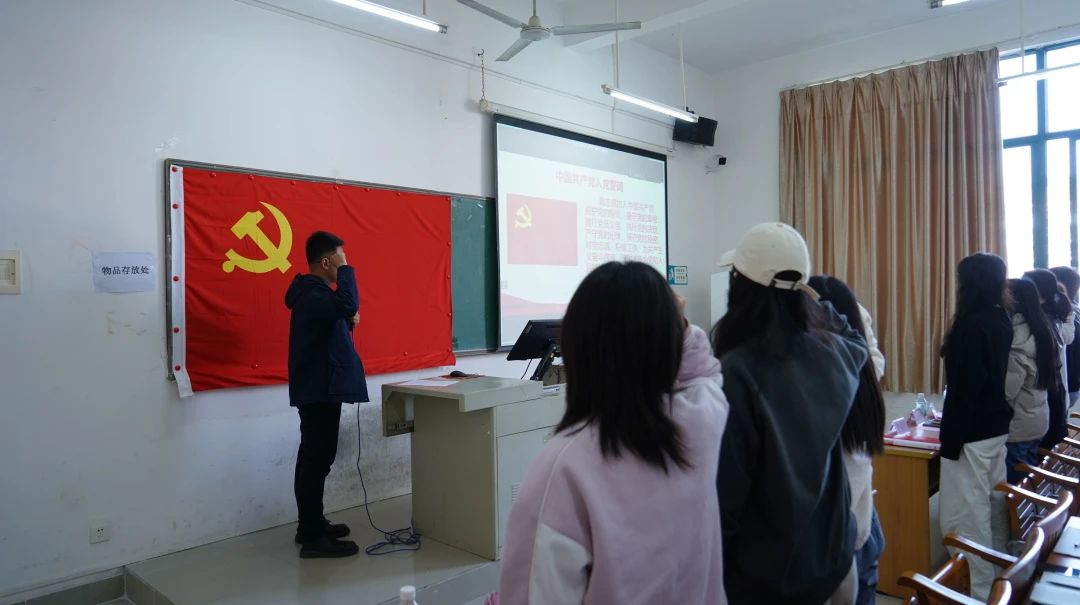 全体党员重温入党誓词仪式。学院党总支副书记姚柏洲同志带领全体党员同志面向党旗进行庄严宣誓,大家面向鲜艳的党旗,举起右手,握拳过肩,以最饱满的精神状态、最洪亮的声音,一字一句地重温那神圣而庄严的入党誓词。这场重温誓词仪式,不仅是对往昔承诺的再次回顾,更是对未来征程的庄严宣誓。