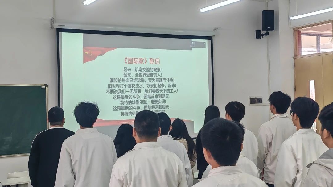 奏唱国际歌。随着国际歌的响起,大会步入尾声,标志着大会取得圆满成功。本次大会激励着全体党员同志在未来工作、学习和生活中,将以更加饱满的热情和昂扬的斗志,践行党的宗旨,牢记初心使命,用实际行动展现党员先锋模范作用,为智能制造与汽车学院建设贡献一份力量!
