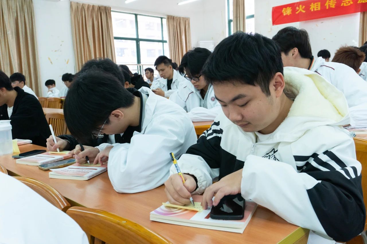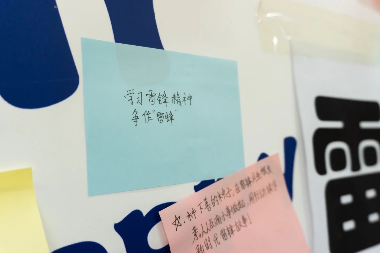 在全体书写雷锋月寄语环节,大家纷纷拿起笔,在便利贴上写下对雷锋月的美好期许和对志愿服务的坚定决心。一句句真挚的话语,承载着同学们对雷锋精神的深理解和传承的信念
