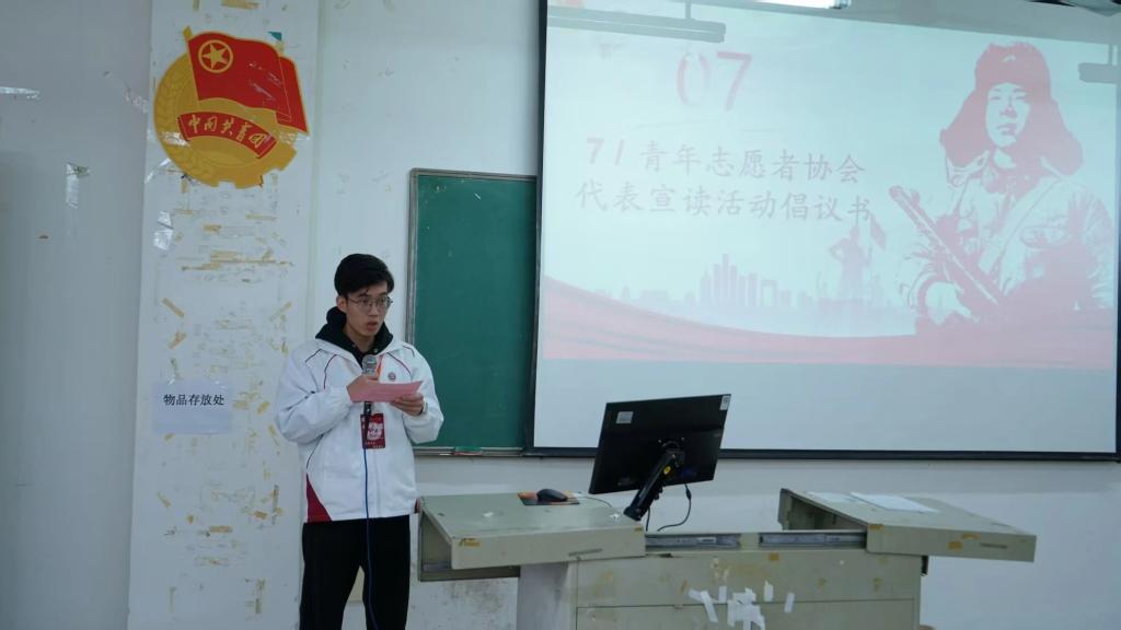 志愿者代表周冠杰同学宣读关于雷锋月活动倡议书,向全体同学发出倡议,呼吁大家以学铸魂,传承雷锋精神内核,践雷锋精神之行,从身边小事做起,让雷锋精神在新时代绽放光芒。