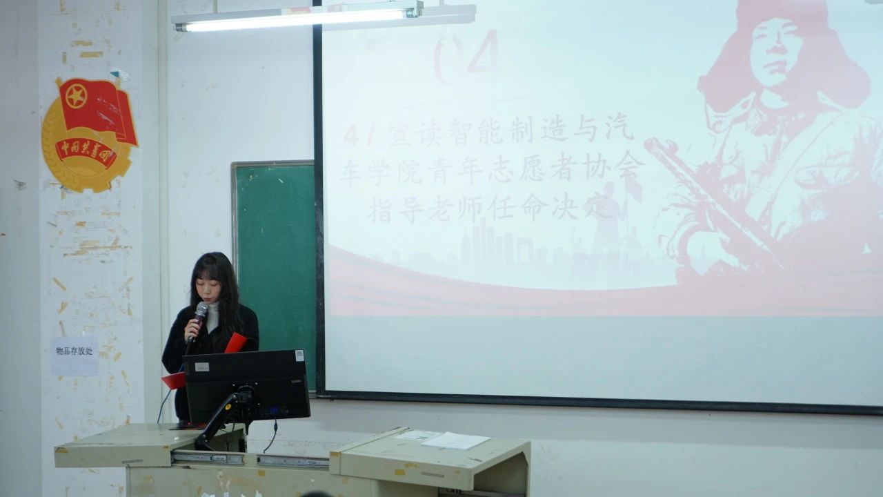 随后,由智能制造与汽车学院党总支组织委员富心彤老师宣读青年志愿者协会指导老师任命决定。在接下来的日子里,新的指导老师将引领大家在志愿服务的道路上稳步前行,为青协注入了新的活力。