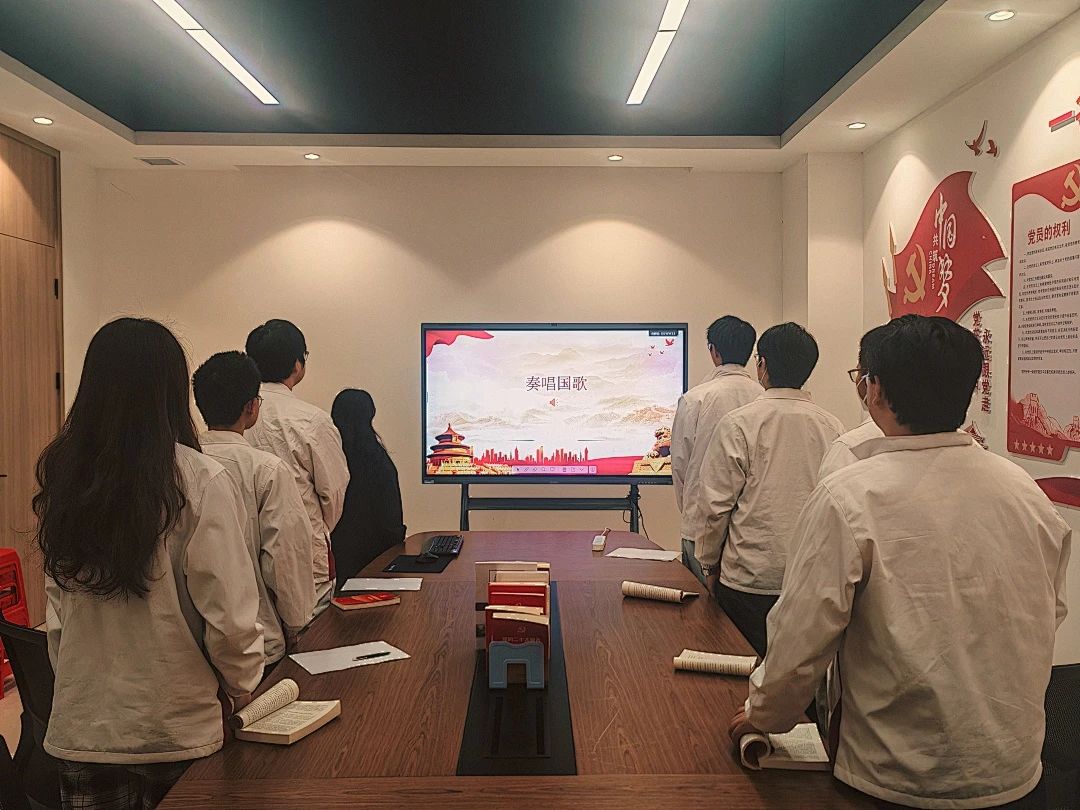 会议伊始,全体起立,奏唱国歌。