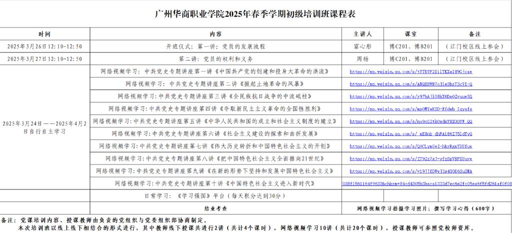 为切实加强学院党建工作,提升学生思想政治素养,2025年3月26日,智能制造与汽车学院党总支在广州校区博学楼 B201、C201教室以及江门校区2号教学楼408、409教室顺利举行了2025年春季学期初级党课培训班开班仪式暨授课第一讲——党员的发展流程,智能制造与汽车学院党总支副书记姚柏洲同志、学院学生第一、第二和第三党支部委员、入党申请人参加此次会议。