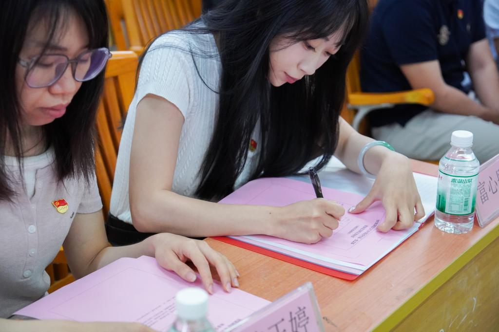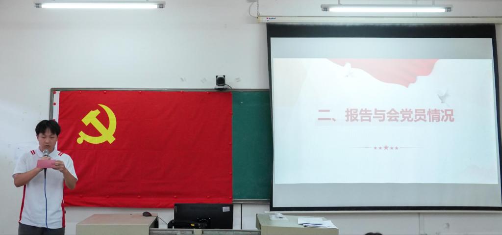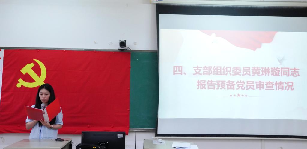 大会第四项议程,学生第一党支部组织委员黄琳璇同志报告对预备党员的审查情况。经支部委员会对王佳鹏等3名预备党员审查,王佳鹏等3名同志在预备期间,系统深入学习党的理论知识,展现出扎实的政治理论素养,对党的性质、宗旨、纲领有深刻且正确的认知,支部委员会一致认定,王佳鹏等3名同志在政治素质、思想觉悟等方面均达到培养考察合格的标准,已基本具备正式党员条件。