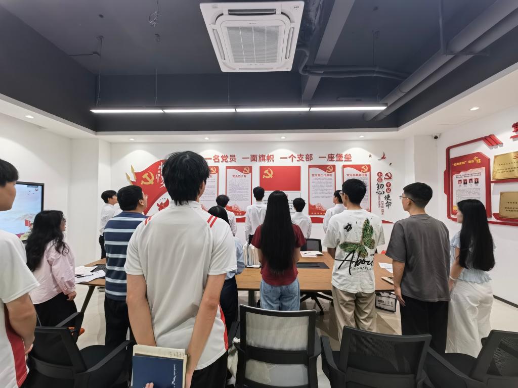 经与会党员讨论并采用无记名投票表决后,经支部大会表决,同意吸收陈晟睿同志等6位发展对象发展为预备党员。支部组织委员吴泽森老师代表支部委员会报告了对陈晟睿同志等6位发展对象的政治审查情况,6名同志思想品质良好、入党动机端正、入党材料齐全、政治历史清楚,同意提交支部大会讨论表决。随后,陈雅静书记带领与会同志进行入党宣誓。