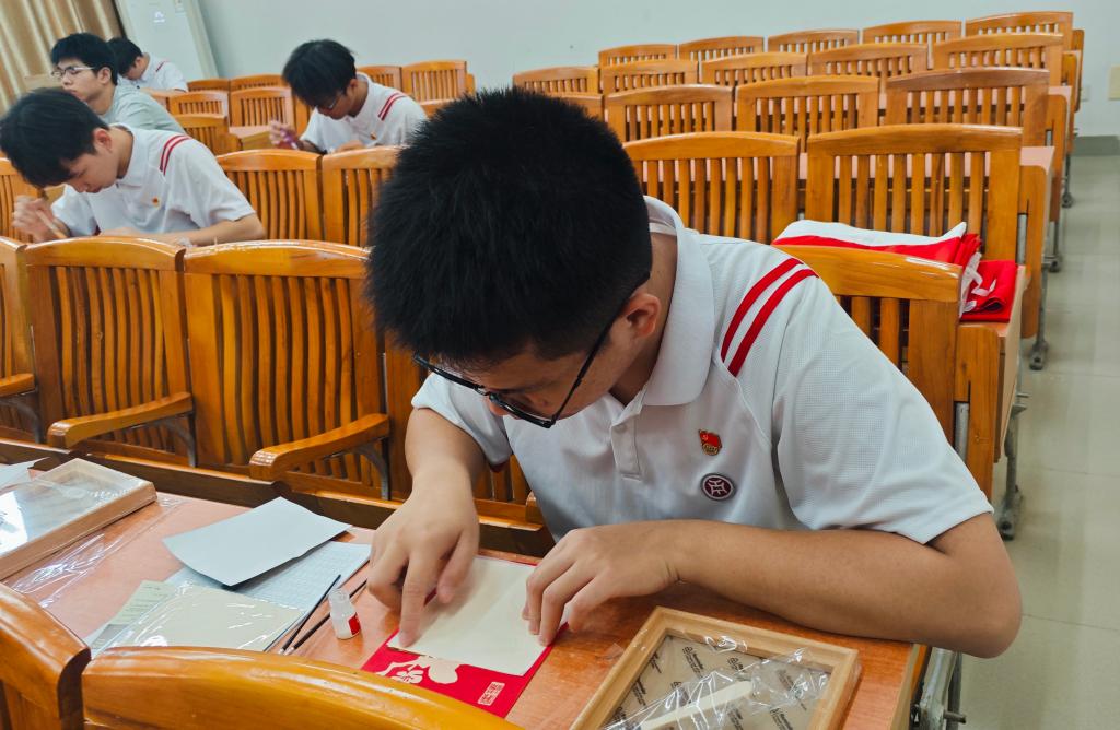首先,学生党员廉洁金箔画创作环节。金箔画以独特艺术形式承载廉洁内涵,党员们手持工具,将对廉洁精神的理解融入创作。他们专注投入,把 “廉” 之要义化作生动艺术作品,让廉洁文化在创作实践中扎根心田。