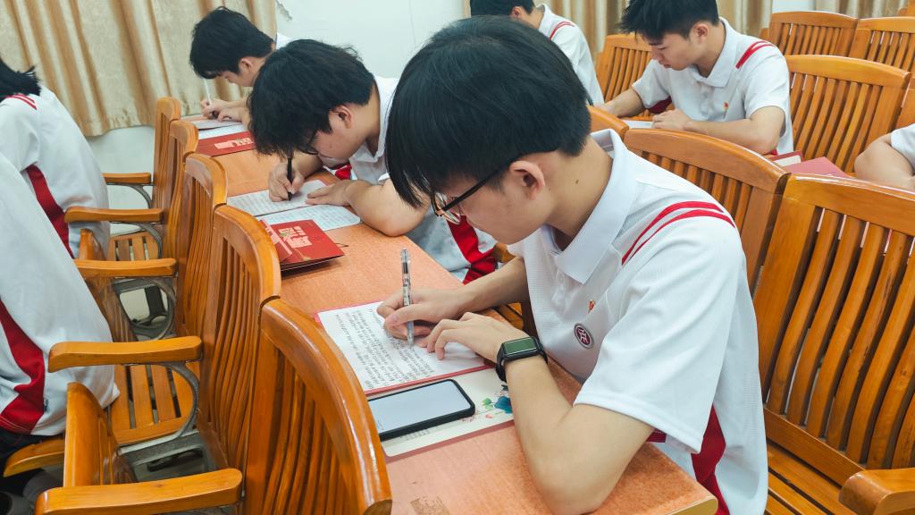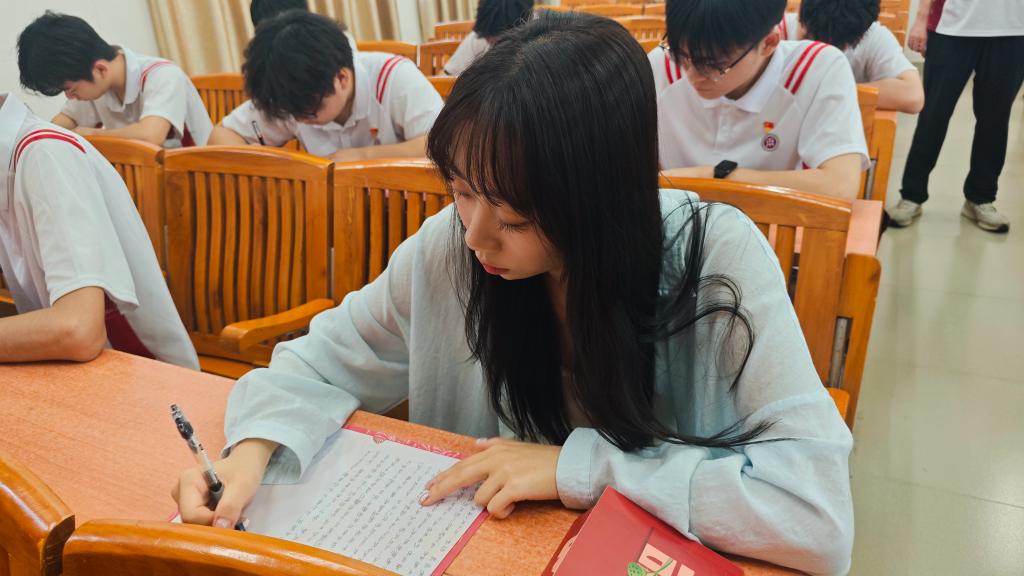 首先,学生党员撰写廉洁家书环节。廉洁教育是党员成长道路上不可或缺的一环,此次活动创新融合廉洁文化与家书形式,引导党员在纸笔间梳理廉洁感悟,一笔一画间,以家书传递廉洁正能量,让党性修养在书写中深化。