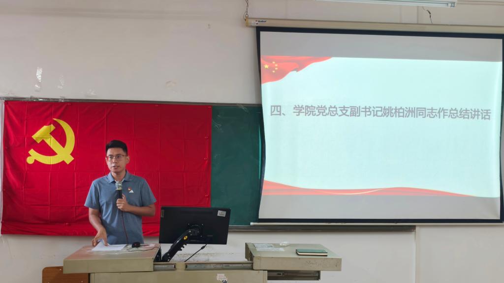 最后,学院党总支副书记姚柏洲同志作总结讲话。他强调,新学期要锚定“党建促发展”的核心目标,将党建工作与学院教学、学生培养等中心任务紧密结合,以规范的组织建设、有力的宣传引导,为学院高质量发展提供坚实政治保障。同时,他期望全体党员以此次会议为契机,凝心聚力、携手共进,在履职尽责中彰显党员本色,共同为学院党建与事业发展谱写新篇章。