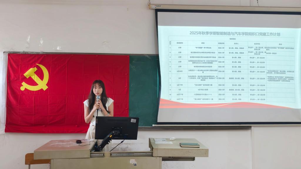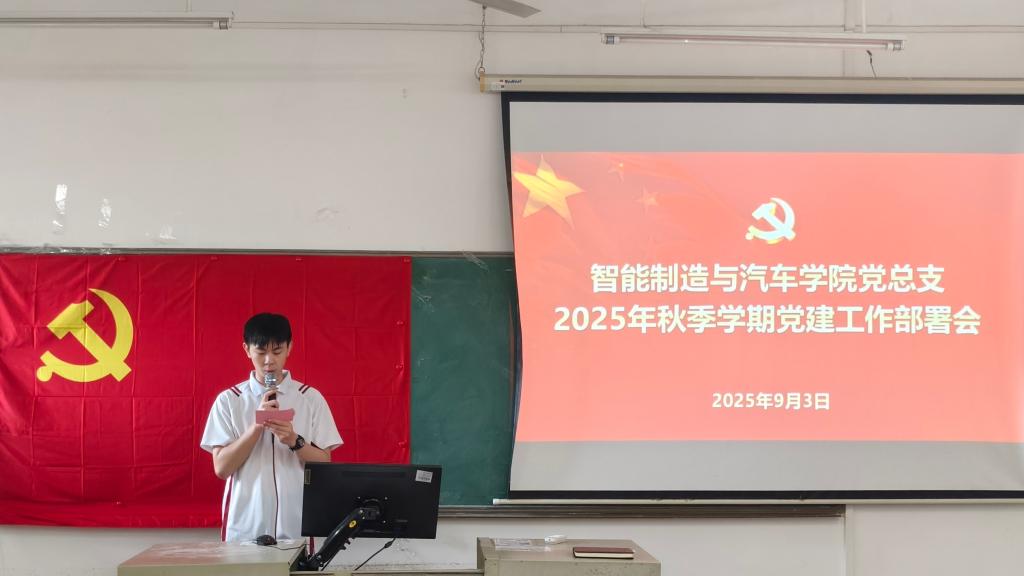 为切实推动学院2025 年秋季学期党建工作重点任务落细落实,扎实做好学院党建核查工作,2025年9月3日,智能制造与汽车学院党总支在博学楼C506教室组织召开2025年秋季学期党建工作部署会议,学院党总支副书记姚柏洲同志,学院教师党支部、学生第一、第二党支部委员以及全体学生党员参加本次会议。