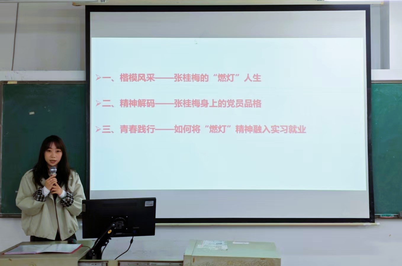首先,学院党总支组织委员、学生第一党支部书记富心彤同志以“学时代楷模,担初心使命”为主题开展授课。以张桂梅同志以“燃灯”精神扎根一线、无私奉献的事迹为切入点,强调党员们要从“燃灯”精神中汲取奋进力量,始终牢记党员身份,把对党忠诚融入一言一行,以坚定的理想信念筑牢思想根基。要用实际行动传递温暖、凝聚力量,以昂扬姿态践行新时代党员的使命与担当,为学院发展与行业进步贡献青春力量。