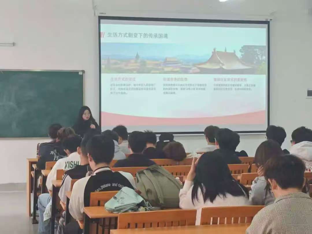 随后,陈雅静书记还强调了青年在非遗传承保护中的责任与使命。她号召全体青年积极投身到非遗保护的行动中来,不仅要做非遗的传承者,更要做非遗的传播者和创新者。党员们应积极发挥自身的先锋模范作用,带领同学们推动非遗走进校园、社区,让更多的人了解非遗、学习非遗,为非遗的传承注入新的活力。