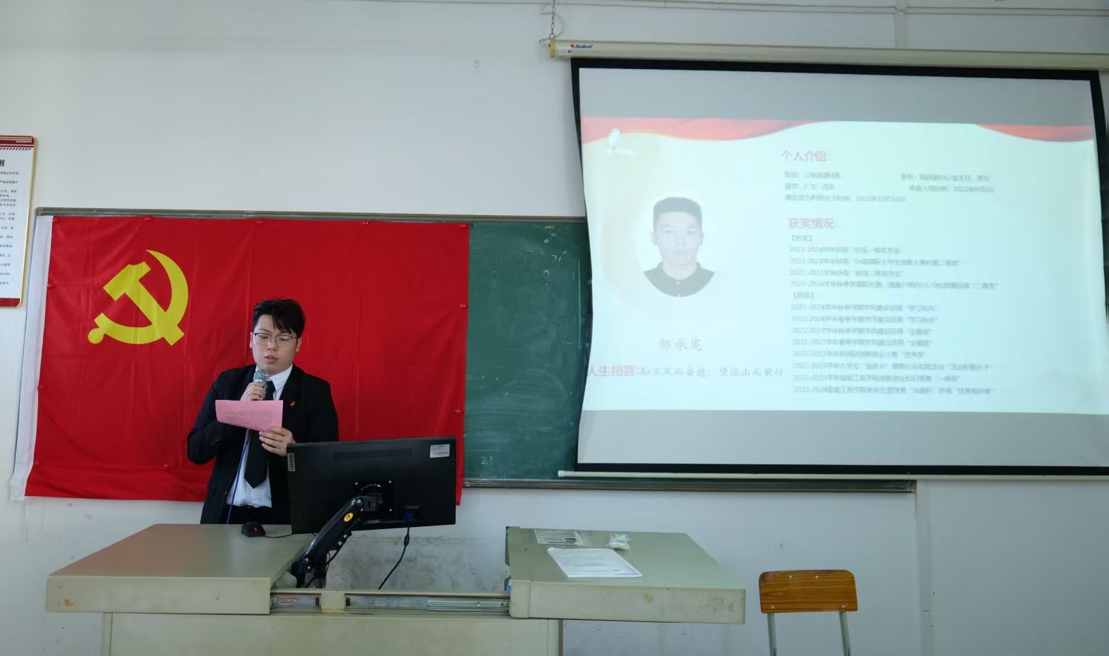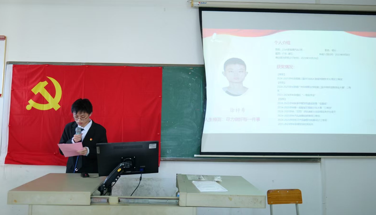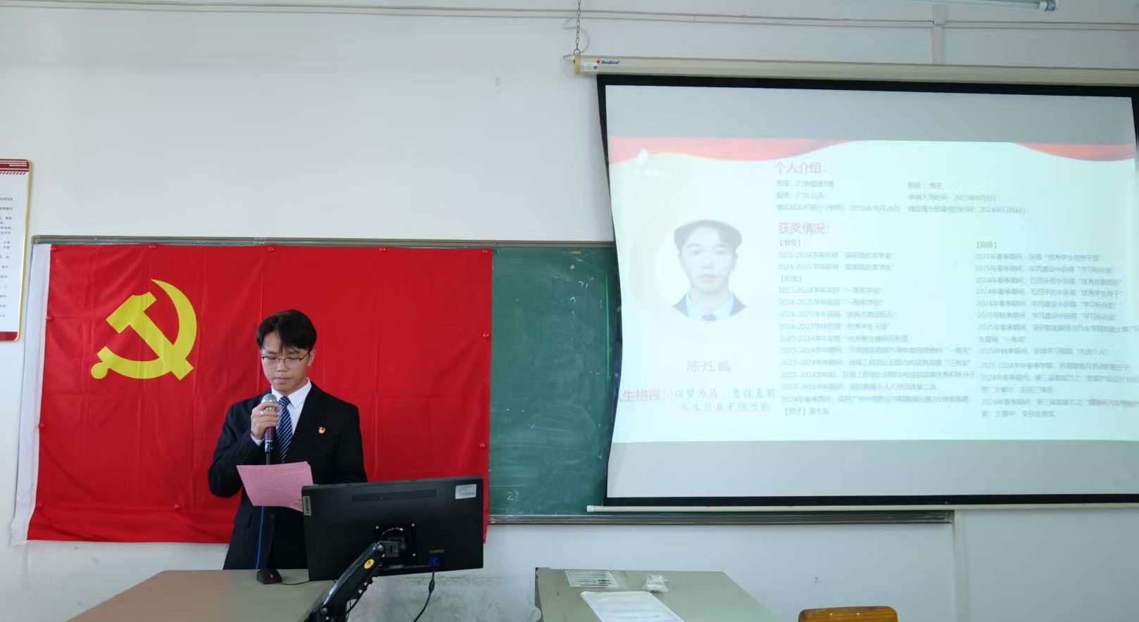 大会第四项议程,预备党员作预备期间思想汇报,提出转正申请,陈灶鹏等6名同志依次上台向大会认真汇报了自己在预备期间的思想、学习、工作等多方面的情况。他们详细汇报了预备期间自身对党的理论知识的深入学习体会,分享了在参与党支部组织活动的收获与感悟。同时,结合自身在学习和生活中的实际表现,反思了存在的不足,并提出了具体的改进方向。汇报结束时,党员满怀真诚地表达了渴望按期转正,成为一名正式党员的强烈愿望,承诺将始终以党员的标准严格要求自己,为党和人民的事业奋斗终身。
