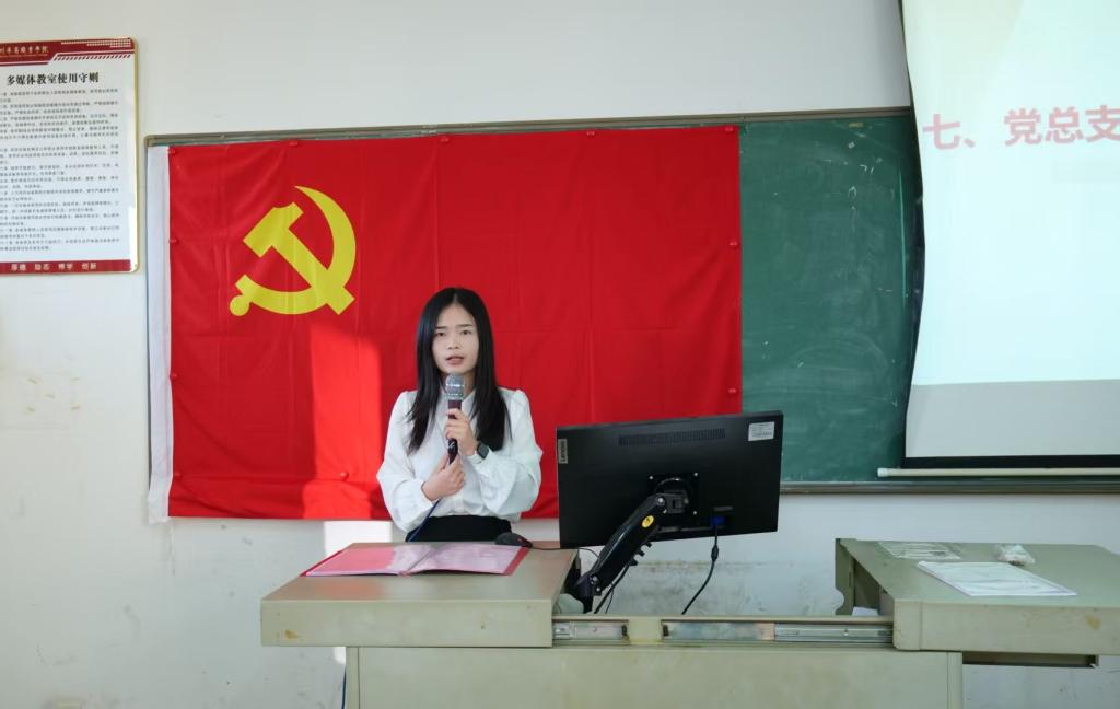 大会第七项议程,学院党总支宣传委员、学生第二党支部书记周杨同志作总结发言。她表示,陈灶鹏等6名同志的转正,为党组织注入了新的活力,增添了新的力量。这不仅是他们个人成长的重要时刻,也是支部党员队伍不断发展壮大的又一见证。她希望,陈灶鹏等6名同志牢记入党誓词,坚定理想信念,在今后的学习、工作和生活中,始终以一名共产党员的标准严格要求自己,不忘初心、砥砺前行,努力发挥党员的先锋模范作用,为支部建设和学院发展贡献青春与智慧。