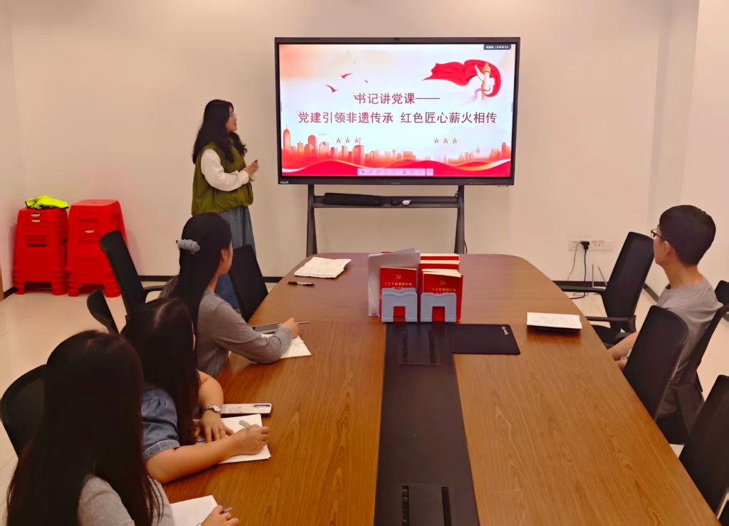 陈雅静书记还结合真实案例,生动展示了党建引领下非遗焕发新活力的实践成果,增强了党员对做好非遗传承保护工作的信心与热情。党课最后,她再次强调,守住文化根脉是全体党员的共同责任,要以高质量党建激发非遗传承的生机与活力。