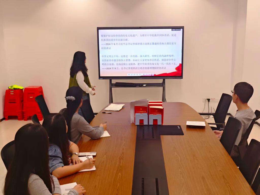 陈雅静书记带领全体党员深入学习习近平总书记关于文化遗产保护传承的重要论述,系统阐释了文化遗产保护与传承的时代价值与实践要求。她指出,文物和文化遗产承载着中华民族的基因与血脉,是彰显民族精神、增强文化自信、提升中华文化国际影响力的重要载体。每一项文化遗产,都是中国精神的价值符号与智慧结晶,蕴含着我们民族的深厚底蕴。