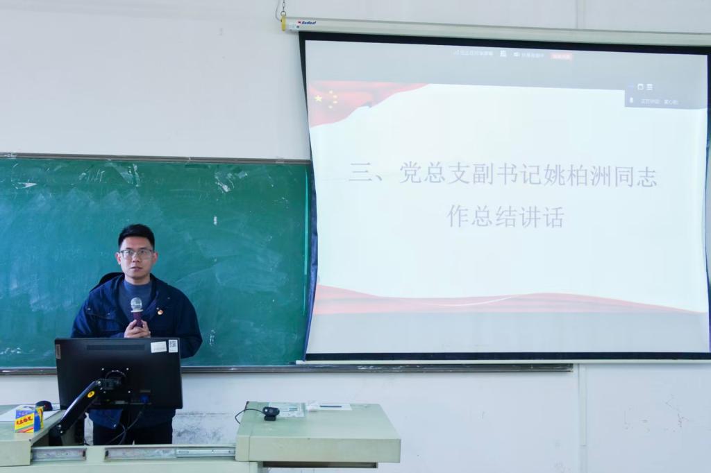 最后,学院党总支副书记姚柏洲同志作总结讲话。他对各支部工作成果予以肯定,逐一点评了各支部的亮点与不足,强调在新的一年努力的方向,持续深化党建与业务工作融合,强化智慧化党建平台建设,持续推进“党建+非遗”品牌建设。他强调,各支部针对问题立行立改,以更高标准抓实抓细党建工作,为学院高质量发展提供坚强组织保障。