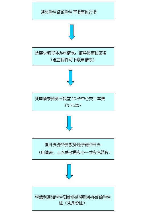 2.补办资料:补办申请表、一张小一寸彩色相片及工本费收据;