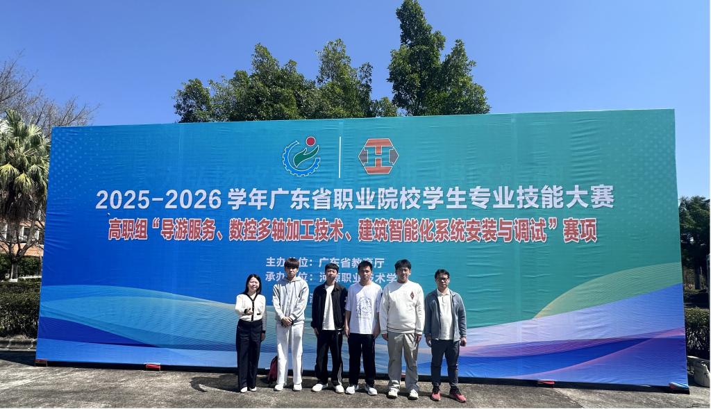 2026年3月13日至14日,广东省职业院校技能大赛(高职组)“建筑智能化系统安装与调试”赛项在河源职业技术学院举行。广州华商职业学院智能制造与汽车技术学院派出了由莫秀英、郑汉尚两位老师指导,学生徐龙儿、洪文熙、洪子恒、陆思凯组成的参赛队伍,与全省高职院校的众多优秀选手同台竞技。