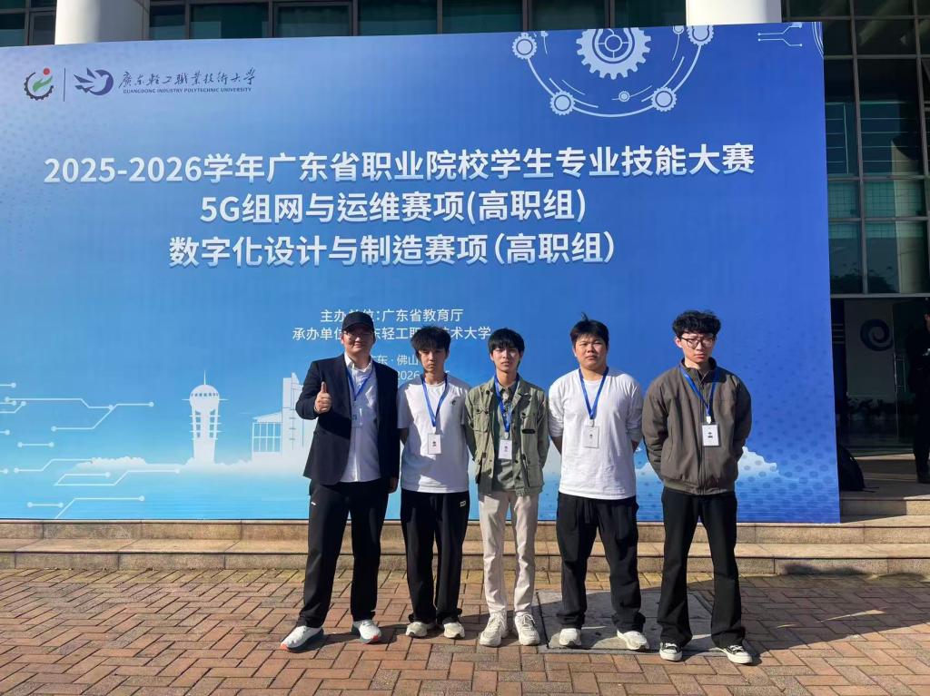 2026年3月12日至14日,广州华商职业学院智能制造与汽车技术学院教师莫秀英、冯文康带领学生余金麟、欧嘉任、刘天、陈炎鑫一行,赴广东轻工职业技术大学(南海北校区)参加数字化设计与制造赛项比赛。