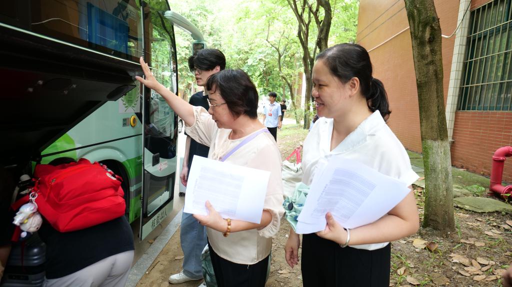 临行前,学院院长祝常红和学院教师党支部副书记周燕清亲临现场,为同学们送行。他们化身最贴心的“护航员”,认真负责地进行人员清点,细致入微地协助管理行李,每一个环节都井然有序,饱含着对学生的深切关怀。